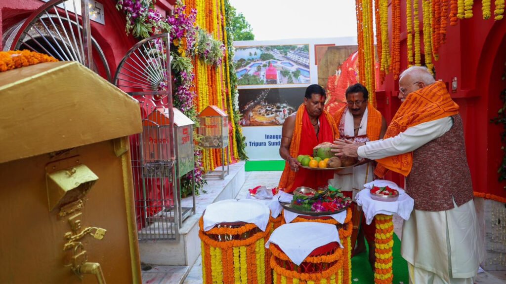 PM Modi Matabari Tripura Visit : ২২শে সেপ্টেম্বর ২০২৫ , দিনটি ত্রিপুরা বাসীর হৃদয়ে চিরকাল স্মরণীয় হয়ে থাকবে। ৫১ পিঠের অন্যতম এক সতী পিঠ মাতা ত্রিপুরা সুন্দরীর মন্দিরে বিজেপি সরকারের ঐকান্তিক প্রচেষ্টা মূলে প্রসাদ প্রকল্পের আওতায় যে সমস্ত নয়া সংস্করণ ও সংযোজন করা হয়েছে তাঁর আনুষ্ঠানিক ভাবে উদ্বোধন হল আজ। আর সেই আনন্দ ঘন মুহূর্তে উপস্থিত ছিলেন দেশের প্রধানমন্ত্রী নরেন্দ্র মোদী।